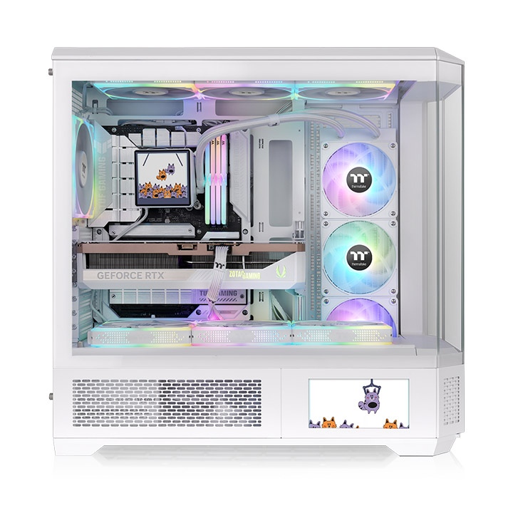 Through the latest TT RGB Plus, the 6‘’ LCD display presents real-time information and plays JPG and GIF files at a 1480*720 resolution. It comes with six default background styles, and users can upload up to 20 custom images. Additionally, the display can show time and weather information, adding highly customizable functions to your View 600 TG chassis and enhancing both visual appeal and personalization options for your build.