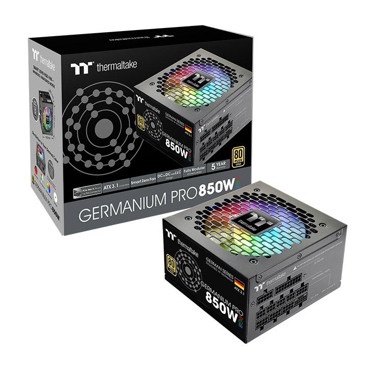 Germanium Pro RGB 850W is an 80 PLUS Gold certified PSU, fully compatible with ATX 3.1 specifications and designed with a native PCIe Gen 5.1 12+4pin connector to ensure powerful and stable performance with next-generation graphics cards.