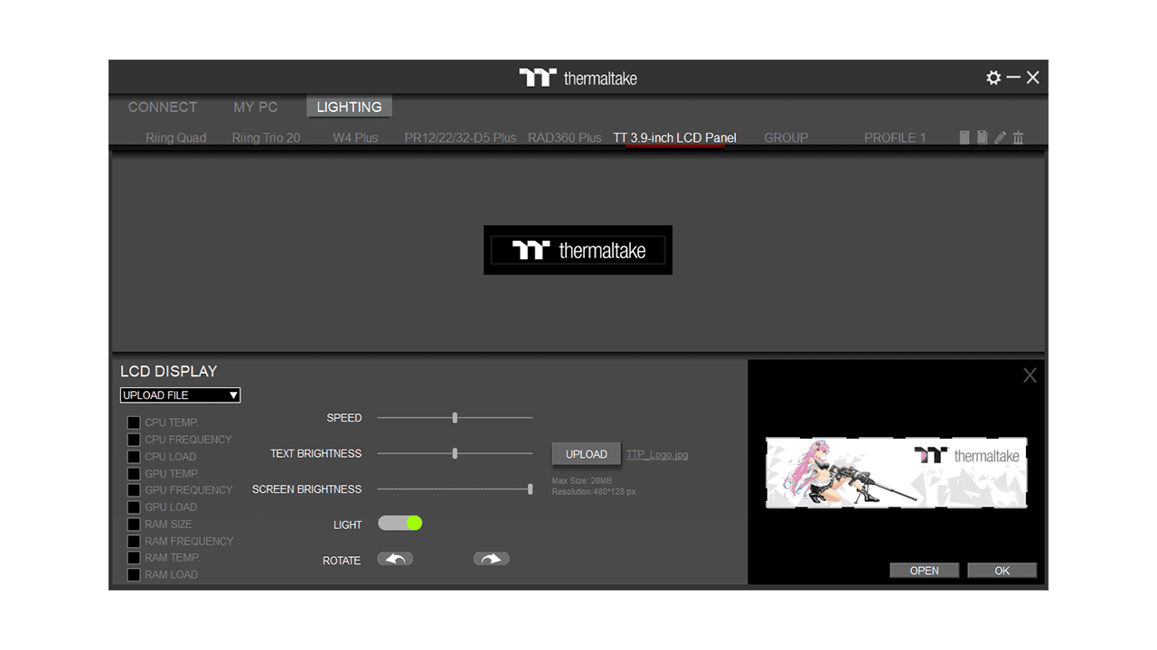 Caution: LCD Panel Kit for The Tower 500 is only supported by TT RGB Plus 2.0.