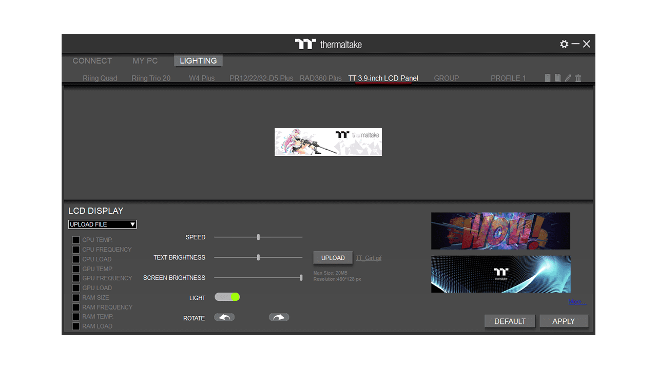 3.9” LCD display, and upload any images or GIFs to add extra flair with the TT RGB Plus 2.0