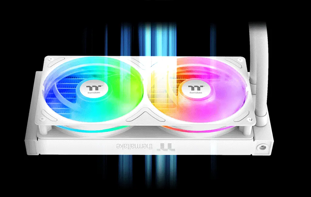 TH240-S V3 ARGB Sync AIO Liquid Cooler Snow Edition has a powerful 240mm PWM fan module, a single-frame unit combining two 120 mm fans. Each fan provides an airflow of 85.29 CFM with 3.86 mm-H2O static pressure while maintaining a noise level of 37.8 dB-A, offering exceptional cooling performance for your system.