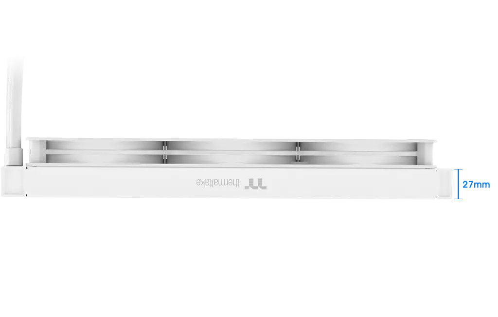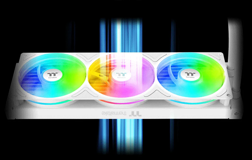 TH360 V3 ARGB Sync AIO Liquid Cooler Snow Edition has a powerful 360mm PWM fan module, a single-frame unit combining three 120 mm fans. Each fan provides an airflow of 85.29 CFM with 3.86 mm-H2O static pressure while maintaining a noise level of 37.8 dB-A, offering exceptional cooling performance for your system.