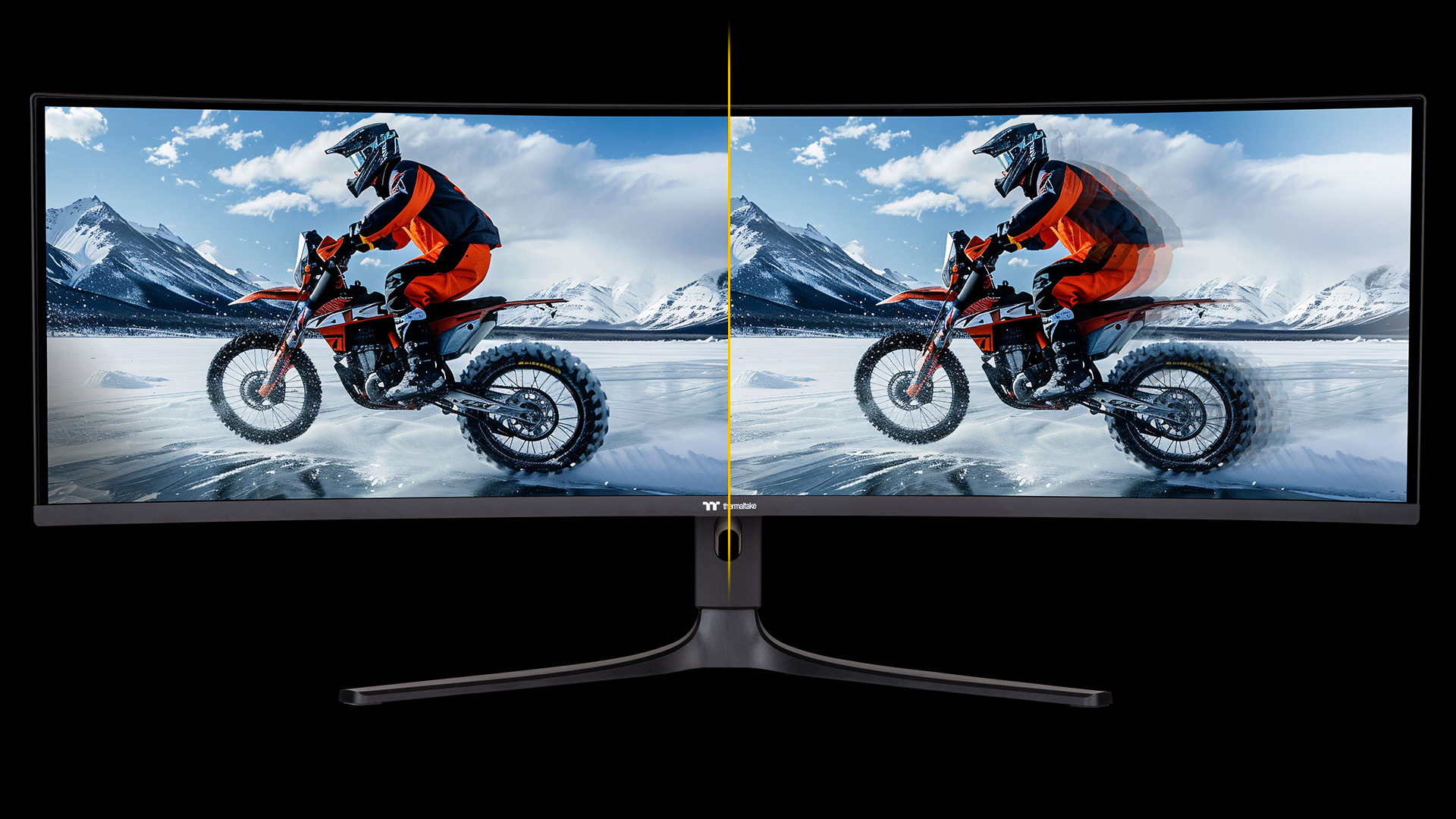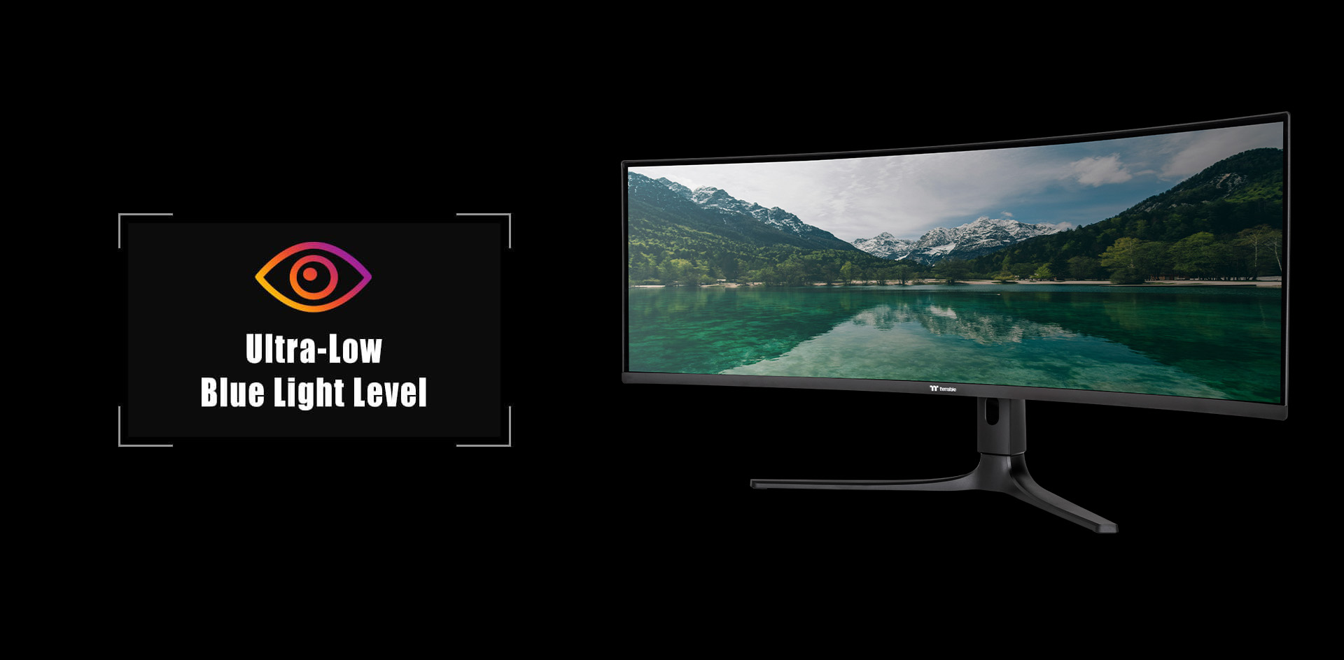 Thermaltake TPM-O49CDQ features a 49” DQHD (5120×1440) panel. This 32:9 panel allows gamers to dive into bigger game scenes compared to other traditional FHD panels.