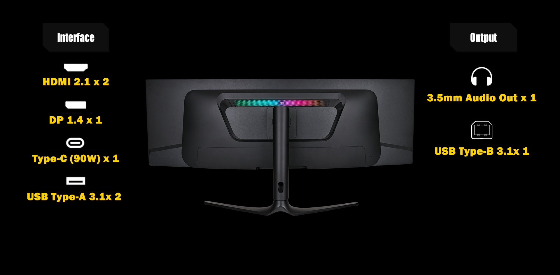 | Interface | Input 1: HDMI 2.1 x 2 Input 2: DP 1.4 x 1 Input 3: Type-C 90W x 1 Input 4: DC IN x 1 Input 5: USB Up Port x1 |