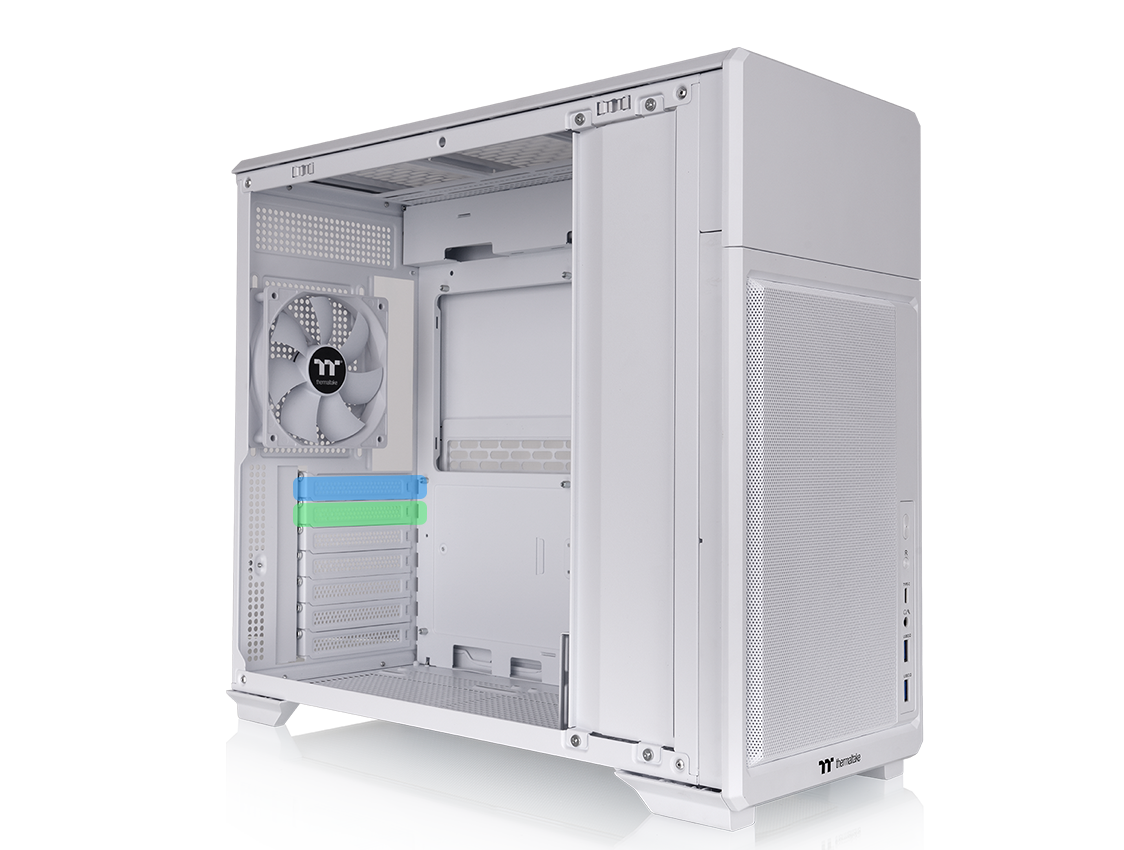The TR300 Snow TG Mid Tower Chassis is an ATX case featuring front mounting PSU design for space efficiency and supports up to 360mm AIO for maximum cooling efficiency. An optional 6” LCD Screen Kit is available for enhanced visuals. Up to eight 120mm fans, and it supports up to 360mm radiator at the top, providing flexible options for cooling solutions.